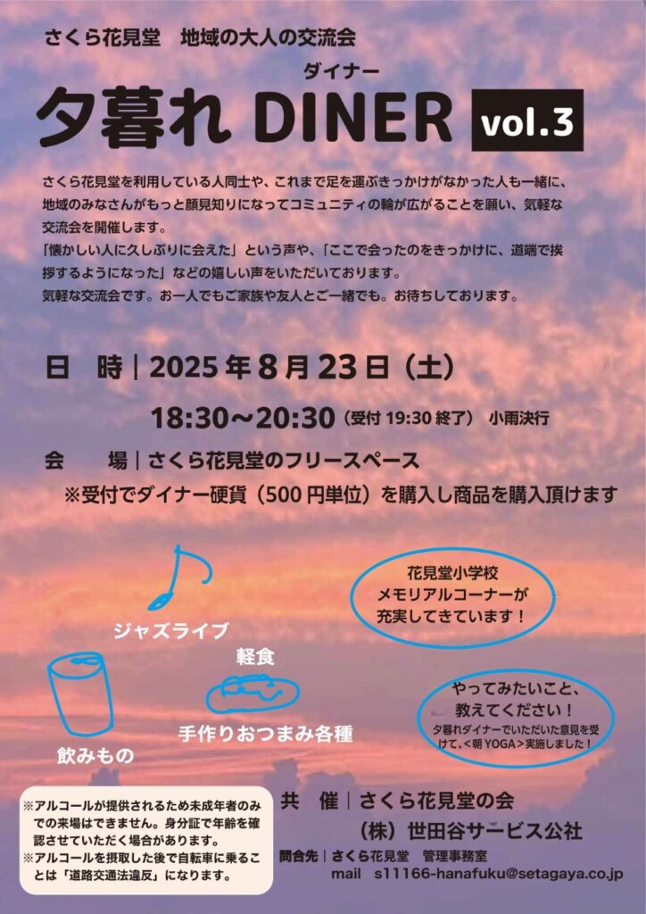 地域の皆様がどなたでも参加ができる花見堂交流会『夕暮れDINER』