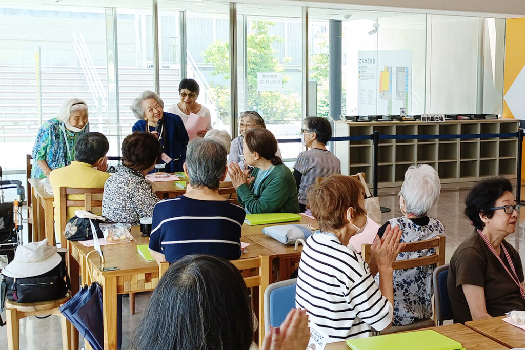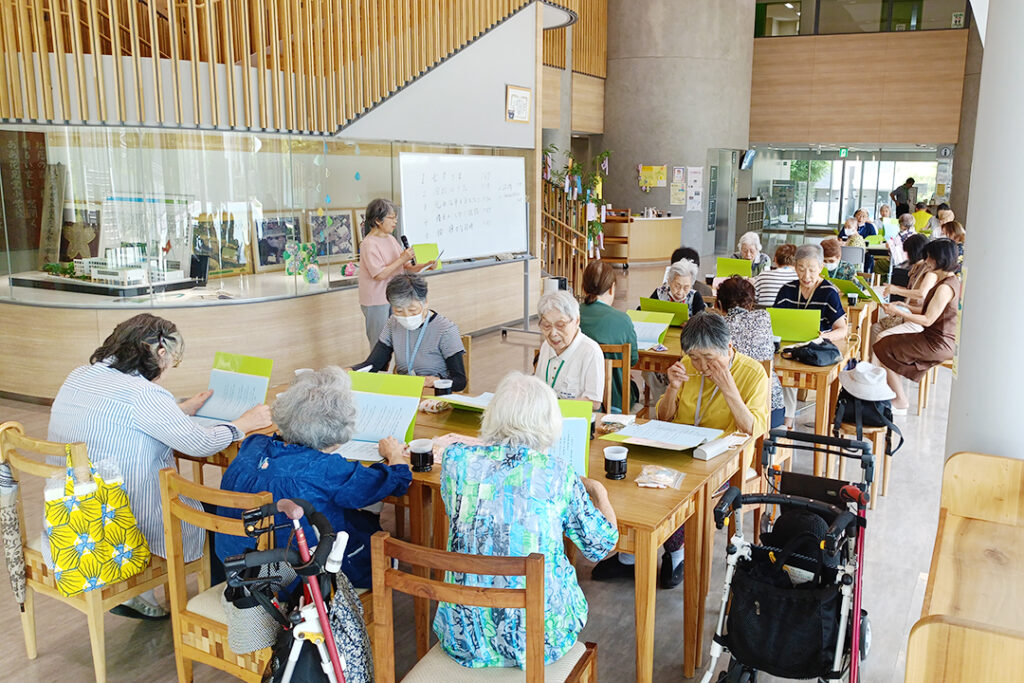 参加者のみなさんは、代田1~3丁目にお住まいの方が多く、毎回20名~30名。最高齢はなんと99歳で、最初から参加されています。当初は代田南地区会館で実施していましたが、建て替えのため、新たな場所を探していたところ、花見堂小学校跡地に複合施設ができるということを聞き、施設建築の検討段階から参加、さくら花見堂オープン後はこちらを拠点に活動をしています。
