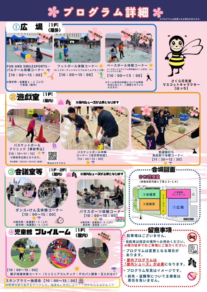 以下、概要をご確認いただき、ご家族揃って「さくら花見堂」へお越しください。